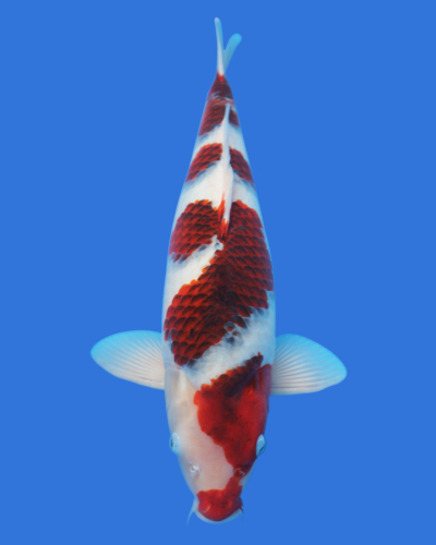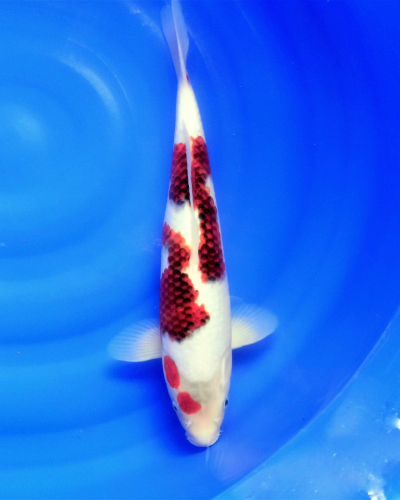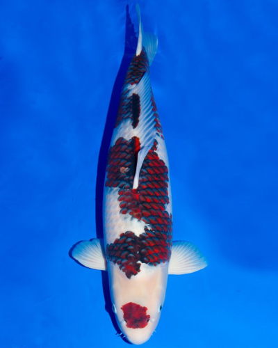 Điểm 3: Vệt màu Hi được phủ trên từng vảy một lớp màu tương tự như mô típ vảy mạng của dòng cá koi Asagi.