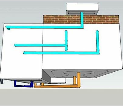 Thiết kế ống thổi luồng thì bạn cần đi vòng qua tường của hồ koi, nằm ở khoảng 1/3 mực nước tính từ mặt hồ đến đáy. Kiểu ống thổi này đẩy các mảnh vụn từ trên mặt hồ vào đường ống hút mặt và ống xoắn hút các mảnh vụn dưới đáy hồ vào đường ống hút đáy.